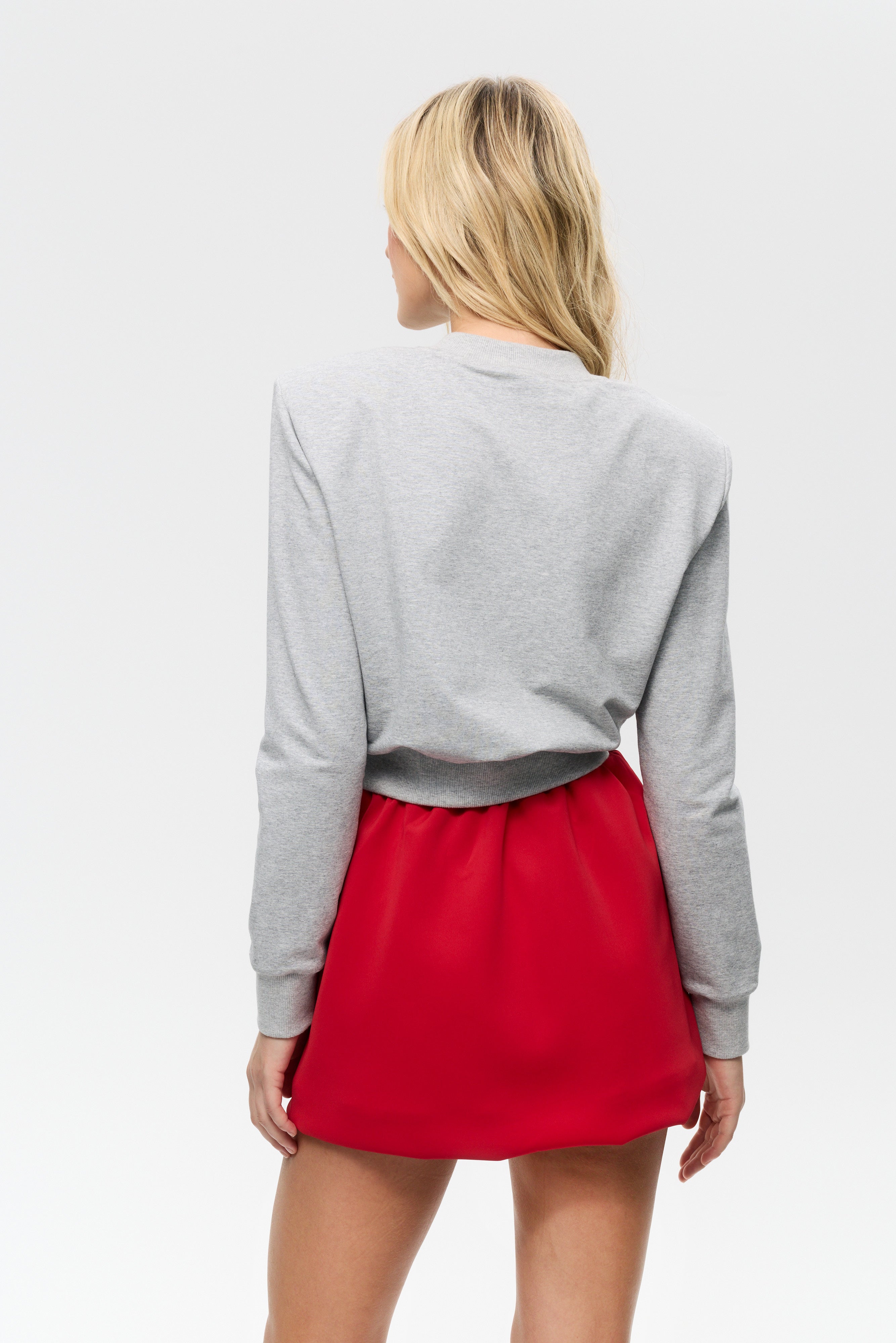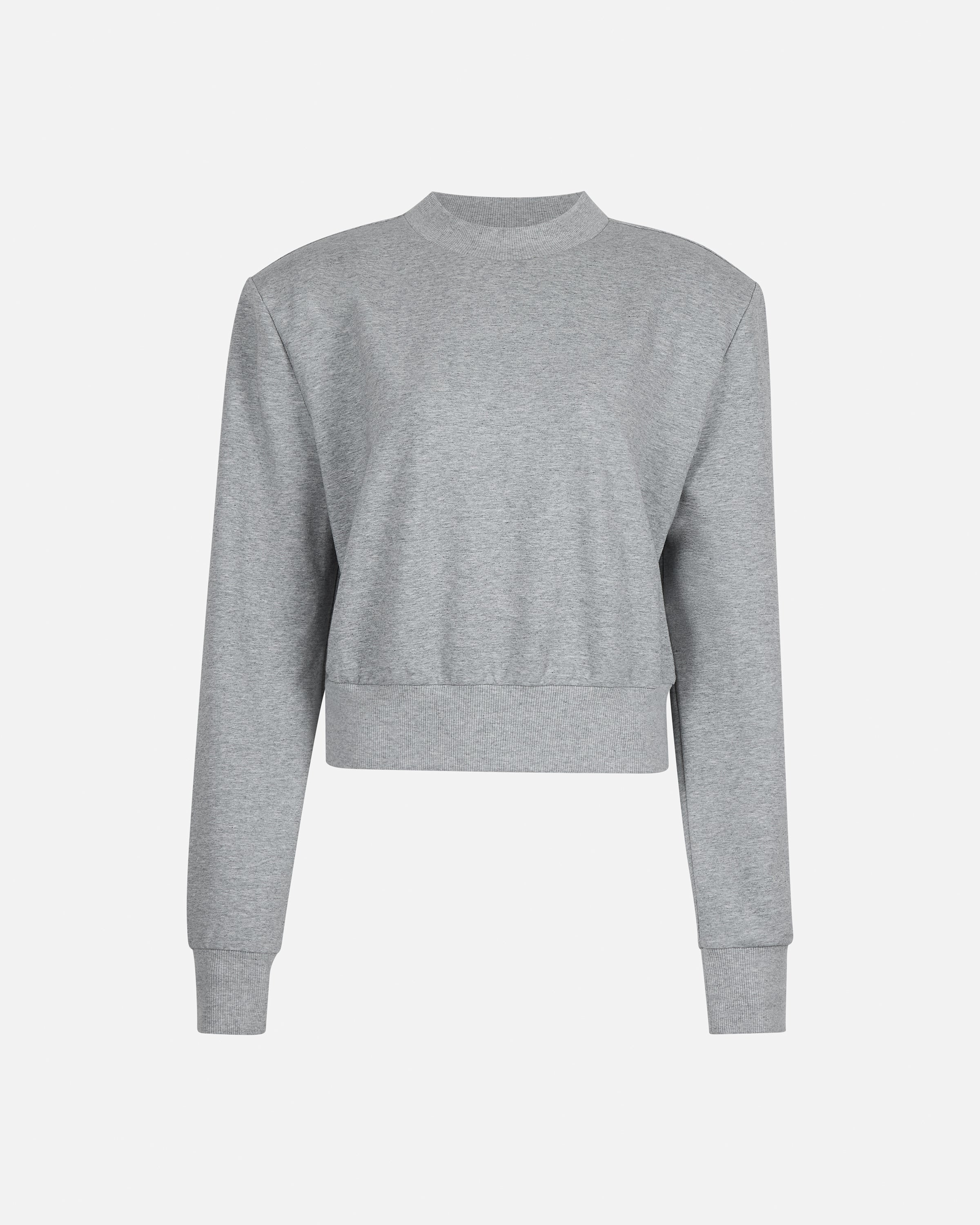 A clean, sculpted sweater designed with a defined shoulder line and removable shoulder pads to adjust the silhouette.