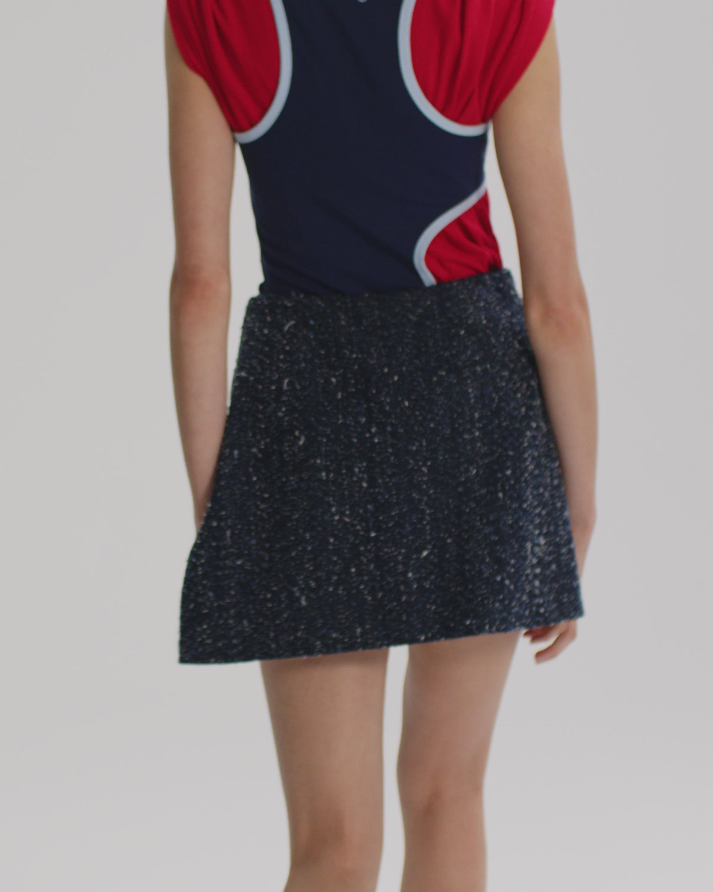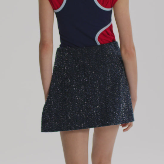 The Milestone Skort is crafted from needle punch embroidered denim.
